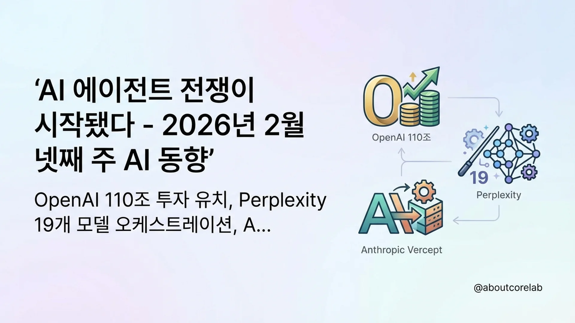 한 주 사이에 161조 원이 움직였다. OpenAI가 Amazon, NVIDIA, SoftBank로부터 총 $110B(약 161조 원)를 끌어모았고, Perplexity는 19개 AI 모델을 동시에 돌리는 자율 에이전트 플랫폼을 내놨다. Anthropic은 컴퓨터 조작 전문 스타트업을 인수하며 Claude의 에이전트 능력을 끌어올렸다. 2026년 2월 넷째 주, AI 업계에서는 “에이전트 플랫폼을 누가 쥐느냐”를 둘러싼 대규모 재편이 동시에 벌어졌다.