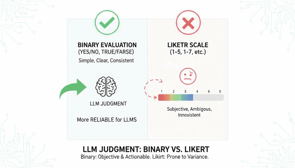 첫 번째: LLM을 Judge로 활용할 때는 반드시 2진 결정 기법을 사용하세요
