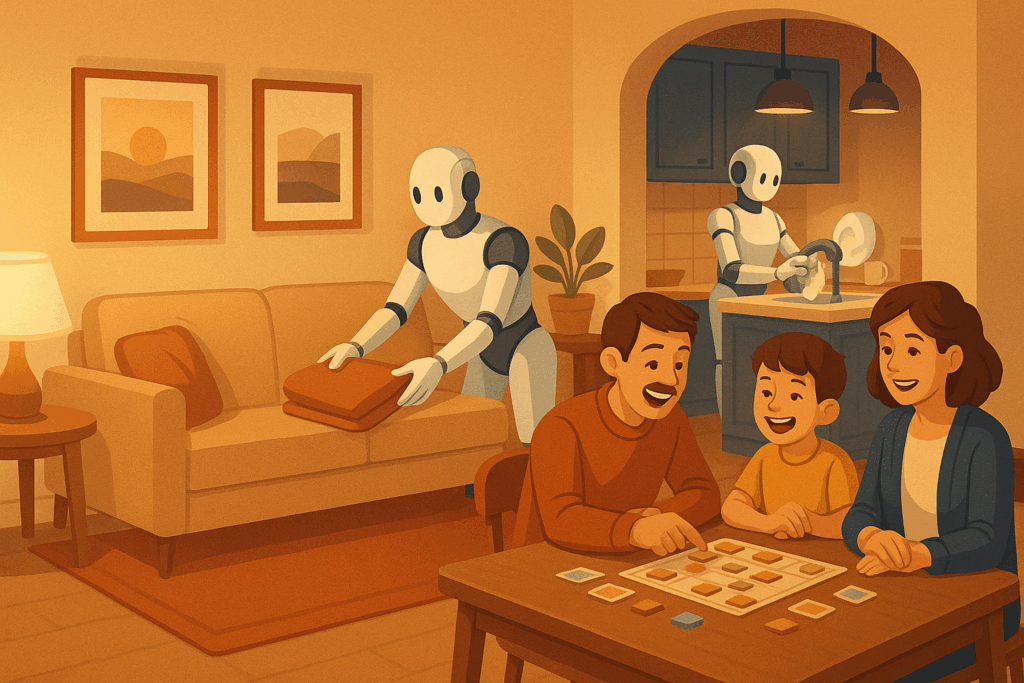 몇 년 후 우리 집 모습이 점점 구체화되고 있습니다. 아침에 일어나면 로봇이 커피를 준비해놓고, 출근 후엔 알아서 청소와 빨래를 처리합니다. 저녁에 돌아오면 지시한 대로 식사 준비를 돕고, 주말엔 집 정리를 함께합니다.