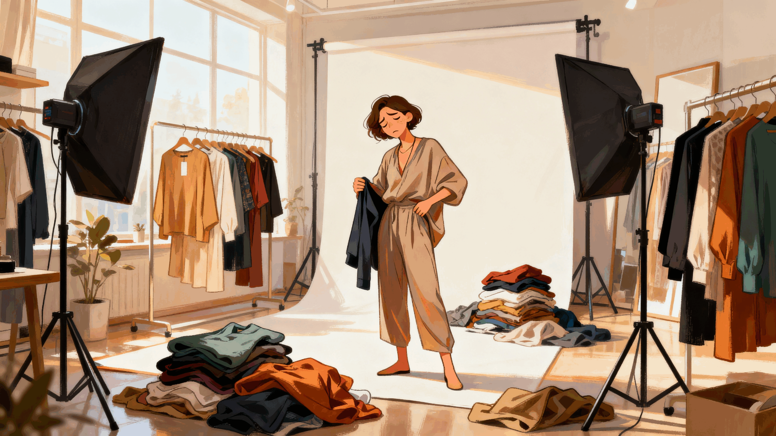 더 큰 문제는 이것이 매일 반복된다는 점입니다. 새로 수주한 상품들, 다양한 스타일링 조합을 모두 촬영하려면 정말 엄청난 시간과 체력이 필요합니다. 아마 패션 업계에 계신 분들이라면 이 문제에 공감하실 것 같습니다.